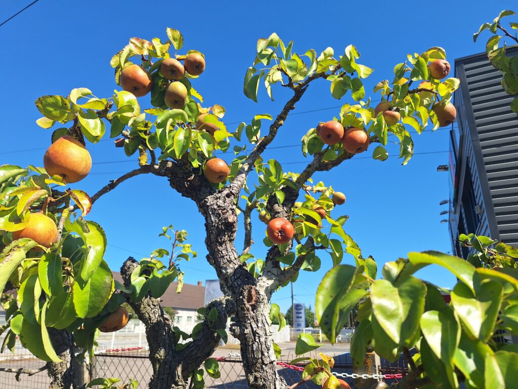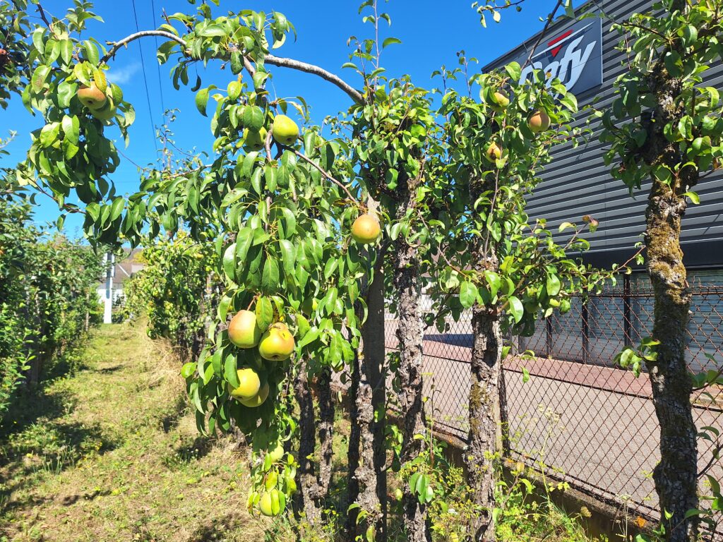 Outre les pommiers et les poiriers, ce verger comprend un cerisier, plusieurs pêchers et noisetiers ainsi que plusieurs vignes. Les arbres sont déjà productifs.